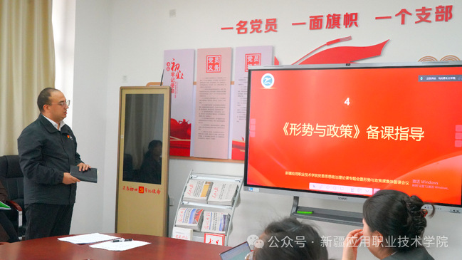 随后,刘春艳同志领学《教育部2025年“形势与政策课”教学要点》,围绕“紧扣一个核心使命、把握国内国际两大维度、抓好三项教学关键”解读。强调《形势与政策》课要紧扣“以进一步全面深化改革推进中国式现代化”节点,讲清党中央关切与国家重点工作,突出“三个紧扣”,即紧扣时代主题、学生思想实际和课程定位;在内容体系上,以“高质量发展推进中国式现代化”为主线,梳理“安全与开放”支撑、“稳增长促民营强内循环”任务及“抗战精神与‘十四五’蓝图”精神动力;教学关键上,要求落实“政治站位高、内容对接准、效果落地实”,严守“政治线、时效线、方法线”,善用案例式、对比式教学,对比“中国之治”与“西方之乱”,用身边案例活化宏大叙事,增强课程吸引力与说服力。