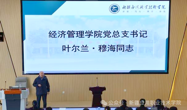 图为 学院经济管理学院党总支书记叶尔兰·穆海总结讲话