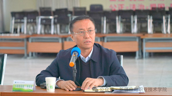 图为 学院党委委员、宣传部部长卡吾孜亚提·斯德克讲话