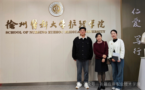 2025年11月7日,新疆应用职业技术学院现代健康学院(筹)院长(援疆)崔芳、专任教师刘嘉彬和刘子晨一行三人赴徐州医科大学开展交流学习,徐州医科大学护理学院副院长张小曼、副书记阚仁建、党政综合办主任赵辰阳及教学办干事张悦越陪同调研。