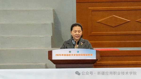 新疆应用职业技术学院党委书记陈梅兰致欢迎辞。她代表学院全体师生向远道而来的各位领导、嘉宾及参赛健儿表示热烈欢迎,并向长期以来关心支持学院发展和本次赛事筹备工作的伊犁州及各级领导致以衷心感谢。她介绍,新疆应用职业技术学院始终秉持“以体育人、以文化人”的育人理念,高度重视体育工作在人才培养中的重要作用,不断完善体育教学设施,丰富校园体育文化生活。此次承办自治区大学生排球联赛,是学院的荣誉更是责任,学院已组建专业的赛事服务团队,从场地保障、志愿服务、医疗安全到后勤补给等各方面做好充分准备,将以热情周到的服务和严谨细致的工作,全力保障赛事顺利进行,努力把本届联赛办成一届文明和谐、精彩圆满的体育盛会。