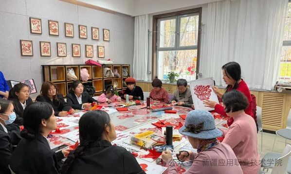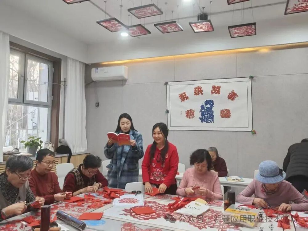 “结对体验”环节将活动推向高潮。学生党员与社区居民结成创作小组,发挥各自优势共同完成党史主题剪纸作品。学生党员发挥专业所长,指导居民精准把握裁剪力度与图案比例;社区居民则分享生活阅历与红色记忆,为创作注入情感温度。剪刀开合间,一张张普通的红纸逐渐变成寓意深刻的剪纸作品。创作过程中,欢声笑语与党史故事分享交织,不仅拉近了党群距离,更让红色文化在互动交流中深入人心。