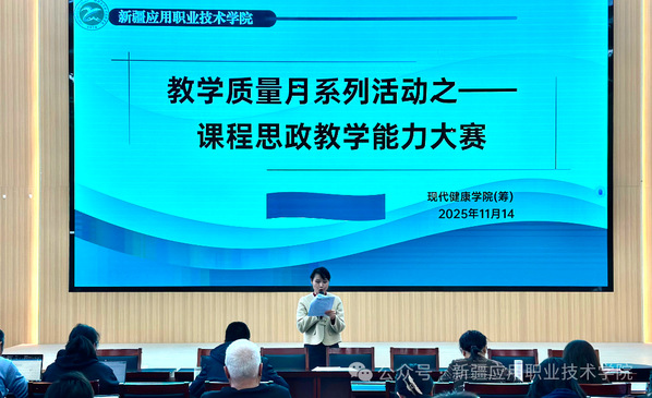 在学院“教学质量月”活动期间,现代健康学院(筹)举办课程思政能力大赛。本次比赛分为青年教师组与中高级职称教师组,并邀请曹红玲等援疆教授担任评委,现代健康学院(筹)全体教职工参会见证。