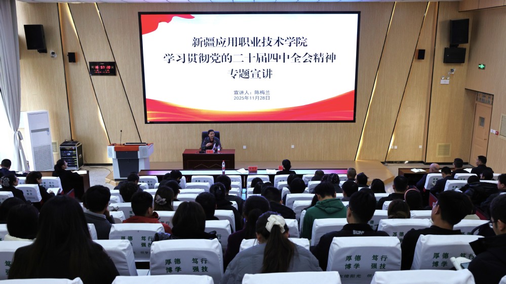 近日,学院党委书记陈梅兰在主校区西院面向三个学院的教师代表,开展了一场主题鲜明、内涵丰富党的二十届四中全会精神专题宣讲会。宣讲紧密结合高职教育发展规律与学院发展实际,既深入解读政策精神,又精准剖析发展形势,为学院“十五五”规划编制与高质量发展指明方向、凝聚共识。