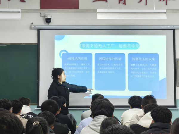 “绿色化工主题科技宣讲”中,化工生物与环境教研室教师团队联合行业教师,从生物制造与AI融合、环保与碳处理等前沿领域切入,结合环境工程技术专业污染治理案例、化工生物技术绿色原料研发实例,为学子带来科技盛宴。互动问答环节,石油化工技术专业学生关于“传统炼化企业低碳改造路径”的提问,引发深度探讨,让宣讲成为思想碰撞场。