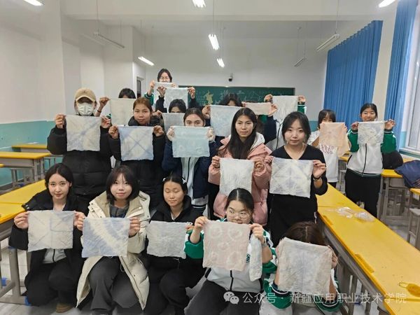 活动伊始,辅导员结合纺织专业特色开展心理减压小课堂,分享 “动手实践减压法”,讲解压力与情绪管理的实用技巧,引导同学们在手工创作中放松身心、调节状态。随后,心理专干作为指导团队,详细介绍了扎染这一国家级非物质文化遗产的历史渊源与文化价值,从秦汉起源到唐代盛行的发展脉络,从捆扎防染的工艺原理到蓝白相间的艺术特色,让同学们在动手前深入感受传统技艺的魅力。