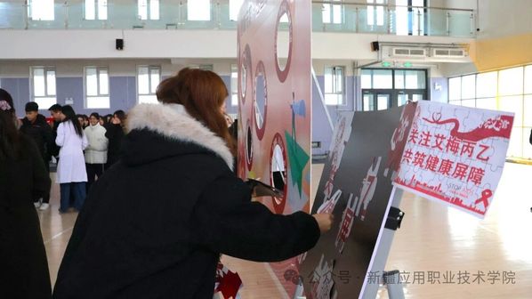 此次活动由奎屯市疾控中心艾防科策划,学院医务室精心组织,以“趣味互动+知识传播+仪式感召”创新模式,让学生在轻松氛围中掌握核心知识,增强防护意识与社会责任感。疾控中心相关负责人表示,青年学生是防艾重点人群,未来将持续创新宣传形式,推动防艾知识进校园、进社区,凝聚青春力量迈向 “终结艾滋”目标。参与学生表示,没想到防艾宣传能这么有趣!扔沙包、知识拼图、幸运大转盘,每一个环节都藏着实用知识点。玩游戏的过程中,我轻松记住了防艾核心常识,完全没有枯燥感。作为职教学生,我也想把这份快乐学习的体验分享给更多人,一起守护无“艾”青春!