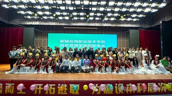 灯火璀璨映礼堂,青春欢歌动校园。近日,新疆应用职业技术学院经济管理学院“青春绽芳华 同心向未来”主题迎新晚会在学校礼堂温情开演。经济管理学院班子成员、师生代表与2025级全体新生齐聚一堂,在11个风格各异的节目中,共赴一场融合青春活力与校园温度的视听盛宴。