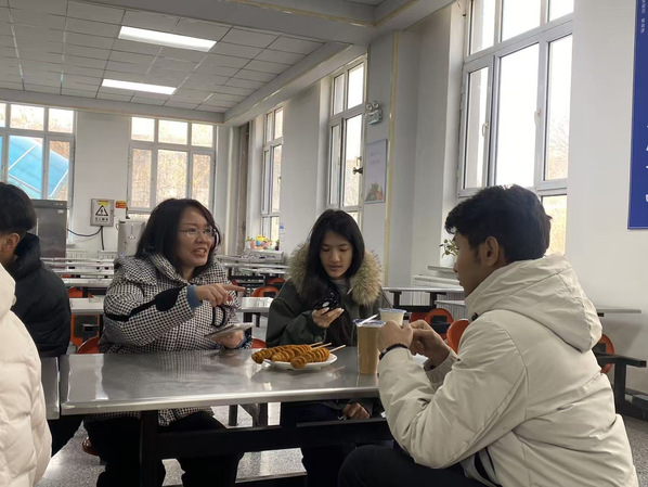 活动中,师生一起用餐,温馨愉悦的氛围充满了整个食堂。这一刻老师不仅是三尺讲台上传授知识的良师,更是学生们的益友,大家谈时事、谈生活、交流学习中遇到的问题以及在学校的所见所闻,宛如一家人。