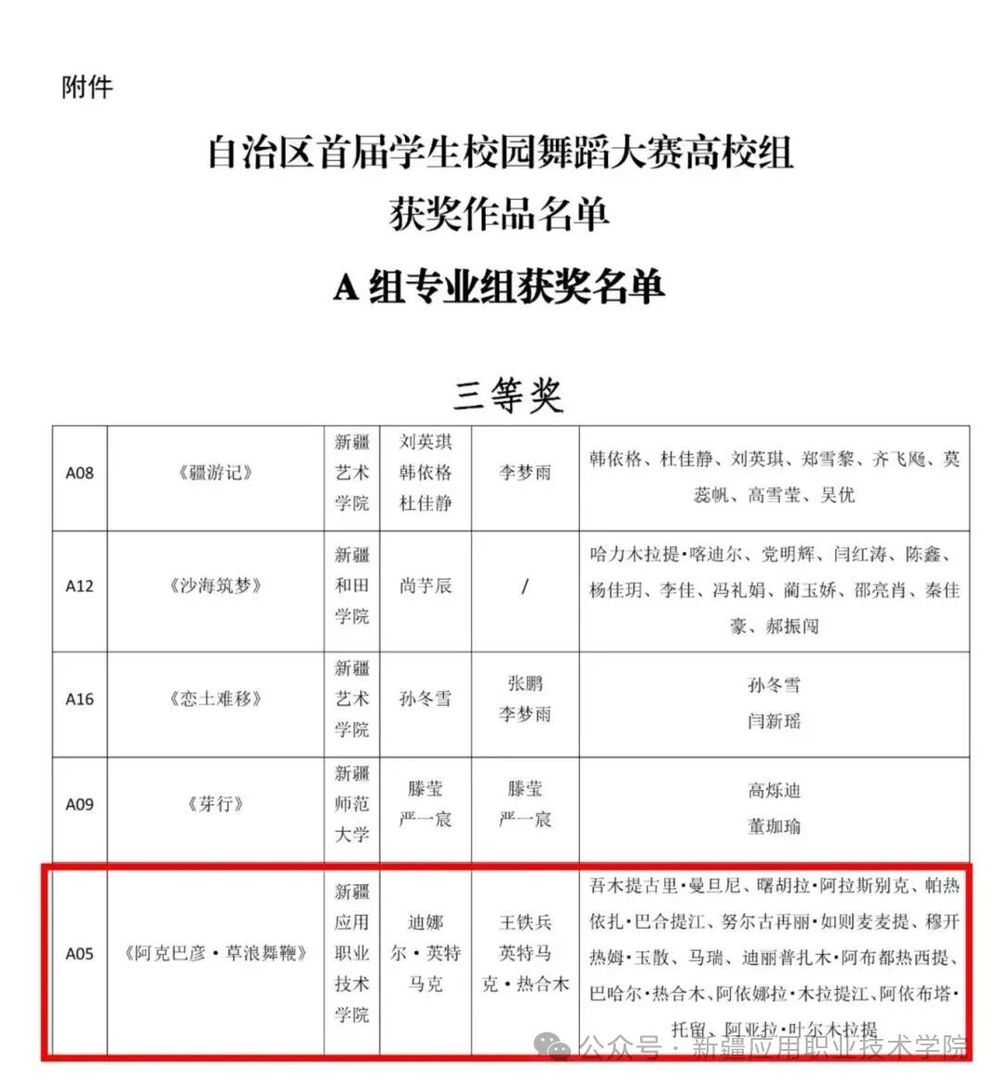 近日,由自治区教育厅、自治区文联、新疆舞蹈家协会联合举办的自治区首届学生校园舞蹈大赛高校组决赛圆满落幕。我院学子凭借扎实的专业功底和精彩的舞台表现,在大赛中斩获佳绩,同时学院还荣获优秀组织单位奖!