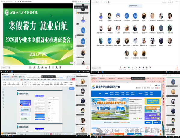 为精准做好毕业生就业服务与指导,通过线上召开就业指导主题班会、班主任会、就业推进专题班委会等形式,系统部署、全面推进寒假期间毕业生就业工作,全力护航学生高质量充分就业。老师们结合专业特点与学生实际,详细解读就业政策、求职渠道、简历优化、面试技巧、签约注意事项等实用内容,提醒学生合理规划寒假时间,积极参与线上网络招聘与实习实践,做到假期不停学、求职不断线。同时开展分类指导与个性化答疑,帮助学生明确目标、找准定位、增强信心。各班班委充分发挥桥梁纽带作用,及时传达学院就业工作安排,协助辅导员和班主任梳理统计班级同学就业意向、存在困难与实际需求、信息推送、进度跟踪与困难帮扶,形成“学院统筹、班级落实、全员参与”的就业工作合力。