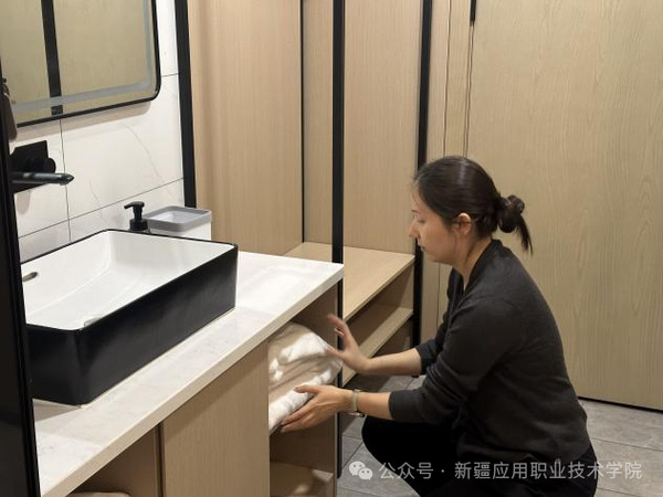 此次实践实行“岗位轮换、任务驱动”的深度沉浸模式。教师们卸下“教师”身份,分别进驻前厅、客房、餐饮、人力资源及市场营销等核心部门,全程参与对客服务、房务管理、宴会统筹、数字化营销等全流程工作。在前厅部,教师们正通过操作PMS系统,学习如何利用科技手段优化入住流程、提升宾客体验,并参与处理各类突发事件,深化对“科技+温度”现代服务理念的理解。客房部实践则更具挑战性,教师们从布草管理、清洁流程标准化到客房智能设备维护,全链条参与房务运营与质量控制,掌握提升宾客入住体验的关键细节。