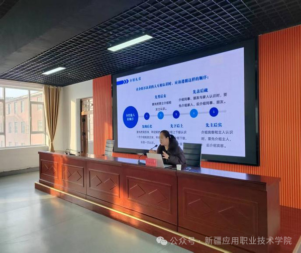 实践期间,专业带头人利用实践间隙,受邀为伊犁文化旅游产业集团开展了礼仪专题培训。培训结合酒店管理实操经验,针对文旅从业人员在客户接待、商务洽谈、跨文化沟通中的礼仪痛点,进行了系统讲解与情景模拟演练,有效提升了参训人员的职业素养与服务形象,展现了学校教师服务地方产业发展的专业担当,获得伊犁文旅集团的高度赞誉。