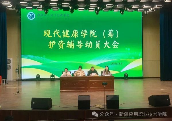 为全力护航护理学子冲刺2026年护士职业资格考试,3月4日,现代健康学院(筹)在南校区演艺厅召开护资辅导动员大会。现代健康学院(筹)班子成员、护理专业全体教师、辅导员及2023级返校备考学生、2024级报考学生齐聚一堂,共绘备考蓝图。