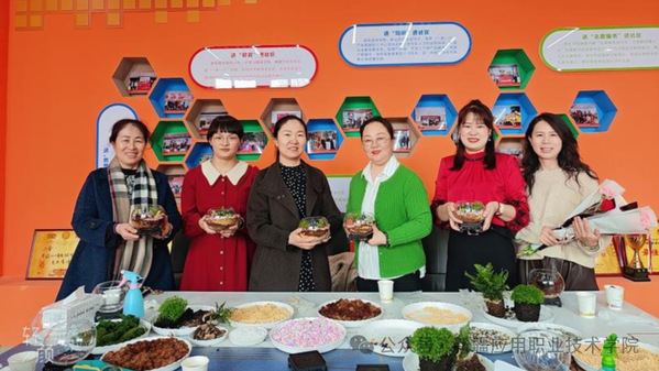 活动尾声,大家手捧着自己亲手制作的微观盆栽,脸上洋溢着幸福的笑容。此次活动既有意义又富乐趣,不仅真切感受到党支部的关怀与温暖,更在忙碌的工作之余获得心灵的舒缓与放松。劳模孟燕、张云对活动给予高度评价,认为活动搭建良好的交流学习平台,既丰富女教职工的精神生活,也进一步凝聚支部合力。全体参与人员表示,将以劳模为引领,把活动中收获的美好与喜悦转化为工作动力,凝心聚力、奋勇争先,立足本职、担当作为,为学院职业教育高质量发展贡献巾帼力量。