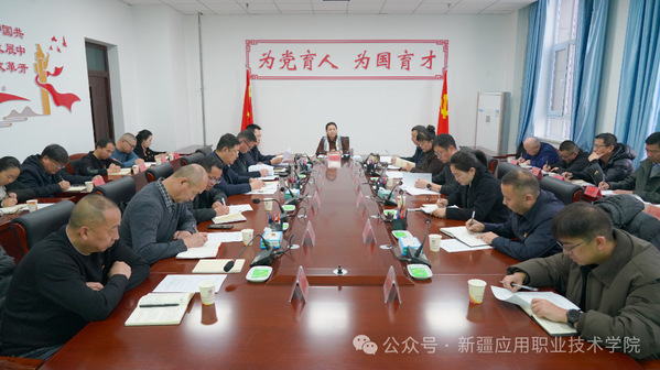 3月11日,学校党委召开2026年第一季度党的建设工作领导小组会议暨3月“党旗引领”书记抓党建工作例会,深入学习贯彻上级关于树立和践行正确政绩观学习教育的重要部署,统筹推进全年党建重点工作,凝聚党建引领学校高质量发展的强大合力。学院党委书记陈梅兰出席会议并讲话,学院党委副书记、院长叶列吾别克·那克斯别克,学院党委副书记、组织人事部(教师发展中心)部长(主任)王广强,学院党委班子成员,各党总支负责人及相关职能部门负责人参加会议。
