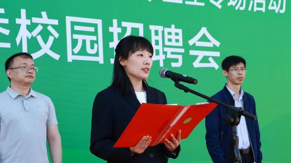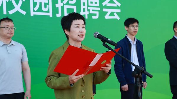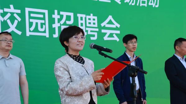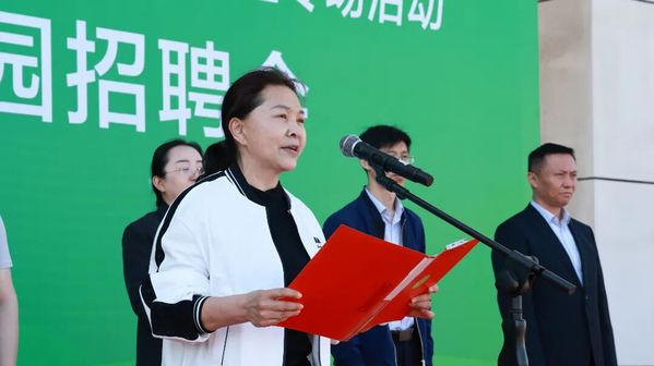 新疆睿禾纺织有限公司人力资源部经理禹春芹作为企业代表发言,介绍企业发展情况与人才需求,感谢政企校搭建优质招聘平台,表达吸纳新疆应用职业技术学院毕业生、深化校企合作的诚意,期待与青年学子携手共促企业与地方发展。